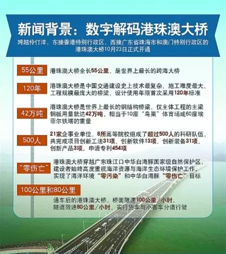 这座历时9年建成的大桥,被英国《卫报》誉为“新世界七大奇迹”之一。有人评价,它是交通工程界的“珠穆朗玛峰”。对于这座目前世界上综合难度最大的跨海大桥而言,每项荣誉的背后,都是一组组沉甸甸的数据支撑。