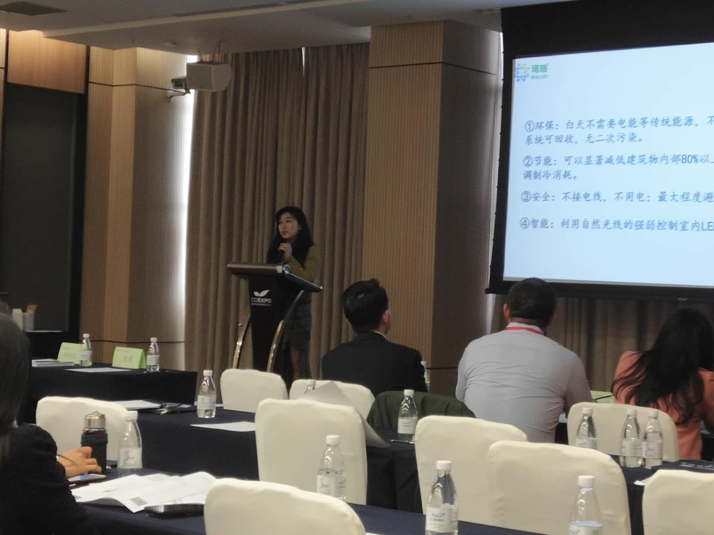 在大会现场,玛珞科技彭品佳详细介绍了,玛珞科技“智能自然光照明系统”工业制造应用领域和带来的节能照明案例、对当前绿色工业园区以及低碳排放的推进,制造业绿色照明以及办公园区照明的环境生态保护,同时表示绿色低碳是一种生活态度,更是一种发展模式,这代表了“高端、高新、高效”的现代产业发展方向。