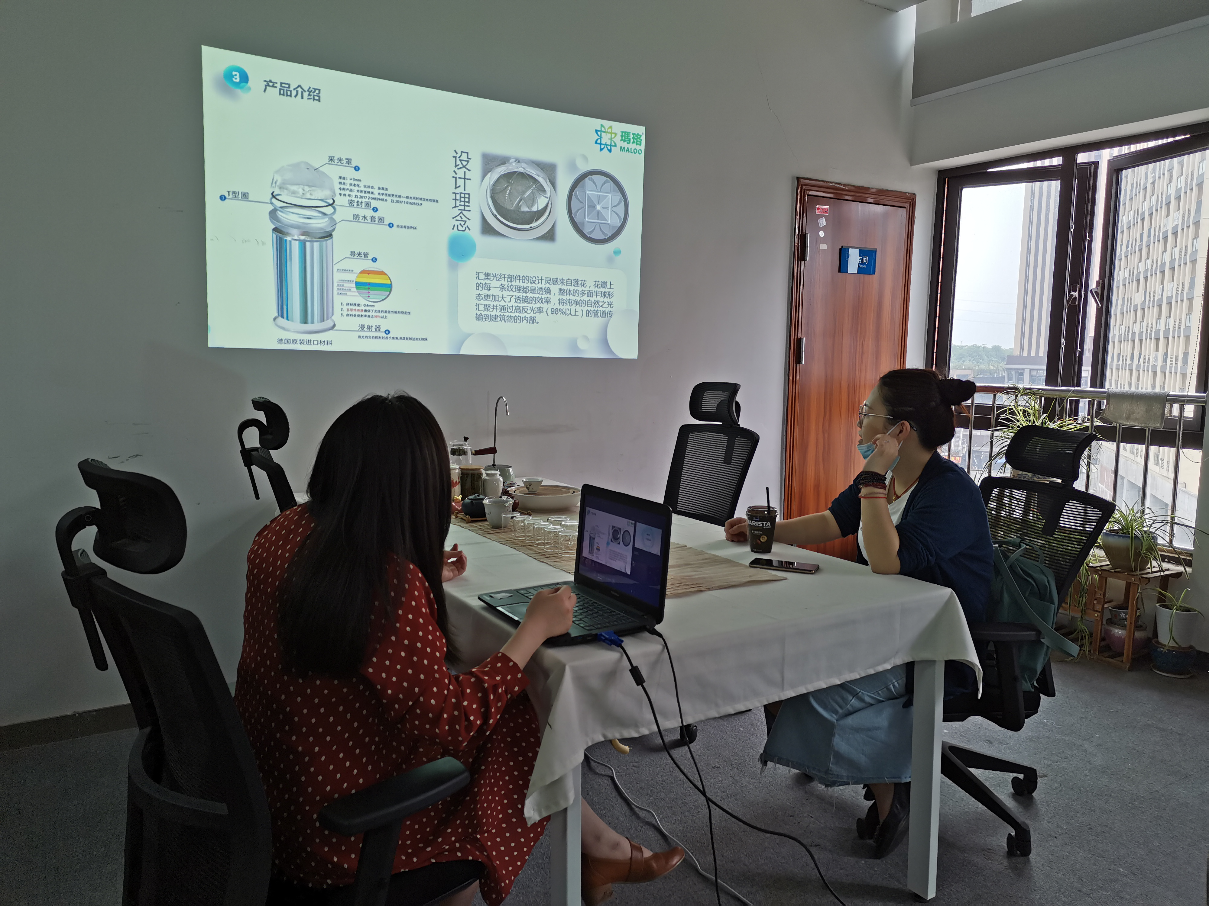 总经理彭品佳介绍了公司的历程及公司目前的战略规划布局,并就自然光照明系统的设计理念、应用场 景、产品优势,服务流程等分别进行了详细的介绍,使中骏地产采购经理对公司的了解加深。